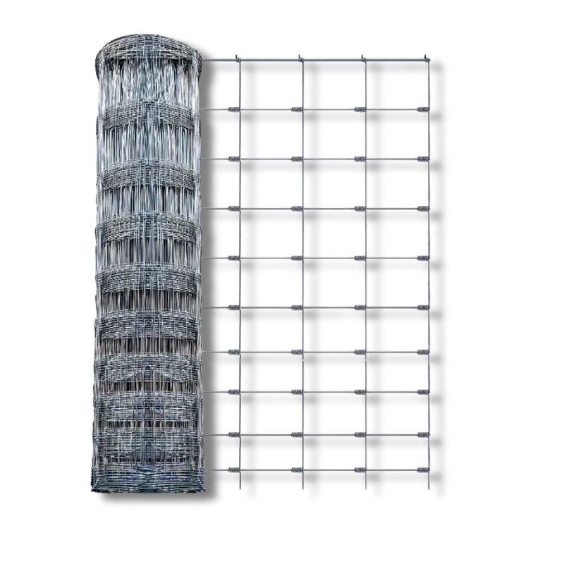 La malla ganadera es un cercado fabricado con alambres galvanizados entretejidos de forma horizontal y vertical, creando cuadros o rectángulos de diferentes medidas. Está diseñada principalmente para delimitar terrenos y contener animales de granja o ganado, ofreciendo seguridad y resistencia.
